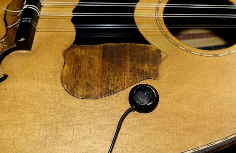 Για την ηλεκτροενίσχυση των μουσικών οργάνων, ο μορφοτροπέας λειτουργεί βάση του πιεζοηλεκτρισμού ή του ηλεκτρομαγνητισμού. Mε βάση την αρχή λειτουργίας, θα διαμορφωθεί το σύνολο του κυκλώματος πάνω στο μουσικό όργανο. Τα πιεζοηλεκτρικά συστήματα λειτουργούν με την τοποθέτηση κάψας στο καπάκι του οργάνου ή ράβδου κάτω από την γέφυρα. Εκμεταλλευόμαστε την μηχανική ενέργεια των κυμάτων που διαδίδονται στα στέρεα υλικά (γέφυρα, αντηχείο) και προέρχονται από την ταλάντωση των χορδών, για να την μετατρέψουμε σε ηλεκτρική. Αυτό γίνεται με την βοήθεια κεραμικών ή κρυσταλλικών υλικών, που έχουν την ικανότητα να παράγουν ηλεκτρική τάση όταν στην επιφάνεια τους ασκηθεί πίεση. Τις ράβδους τις χρησιμοποιούμε για να λαμβάνουμε σχεδόν απευθείας την ταλάντωση των χορδών, δηλαδή σε μεγαλύτερο βαθμό τον ήχο που παράγουν αυτές και σε δεύτερο βαθμό του αντηχείου. Τις κάψες για να λάβουμε σε μεγαλύτερο ποσοστό τις ταλαντώσεις του αντηχείου, το ηχόχρωμα και την δόμηση του ξύλου, απ` ότι των χορδών. Γενικά, τα πιεζοηλεκτρικά συστήματα αποδίδουν ένα πιο φυσικό ήχο.